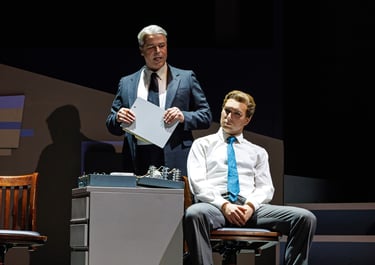 While the supporting cast lays out the context of the Lavender Scare, the emotional weight of the story still belongs to Tim and Hawk, and the production lives or dies by the nuances in their dynamics.