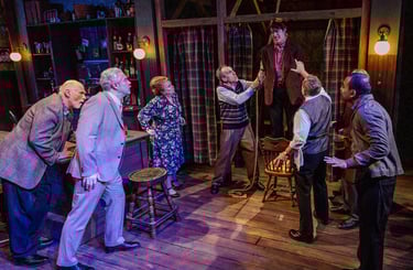 Throughout the night, the sound of “Ya,” “Aye,” and “Lad,” the H-dropping, and the somewhat melodic way of speaking from Northern England splash against my ears. Dialect coach Brandi Welle is phenomenal at training this team of actors onstage to transport us to this dim pub in Oldham, Greater Manchester.