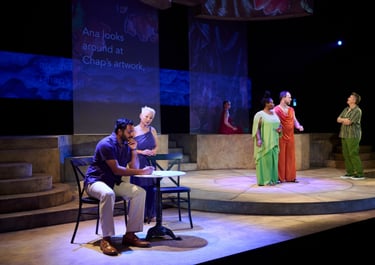 As writer Evan travels to Greece with her composer husband, Peter, she meets an artist named Chap, who works in a café run by her partner, Ana. The story unfolds as Evan and Chap develop a deeper connection. In the story, Evan and Peter are hearing, Chap is Hard-of-Hearing, and Ana is deaf. Starring Chatherine Gowl, Anil Margsahayam, Kaia Fitzgerald, and Jules Dameron, the production mirrors the character design by casting actors with the same lived experience.
